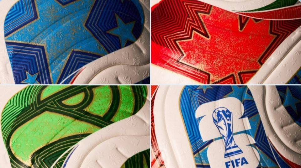 这款足球只由四块拼接而成,是历届世界杯足球比赛中,所用拼板最少的一次。每一块拼板代表一个主办国家,中间再以三角形形式汇聚,展现了三国共同主办世界杯的理念。