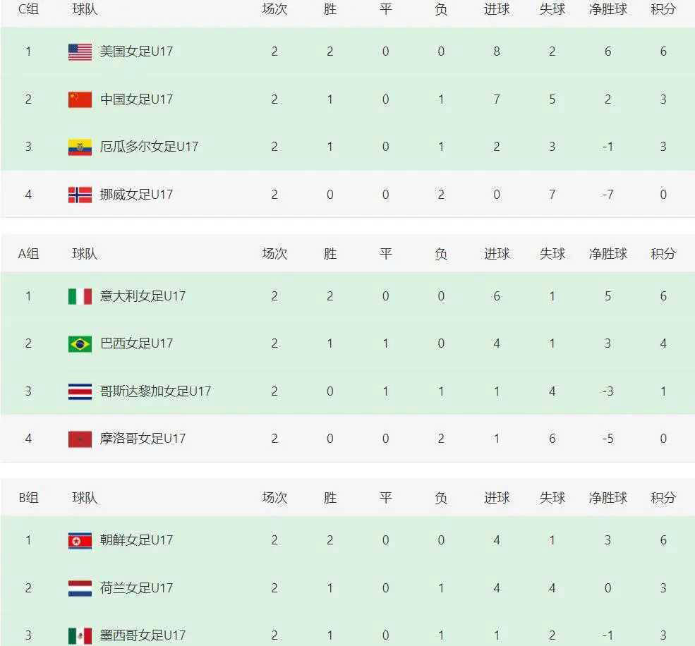 在前两轮比赛中,中国队首战以5-0大胜挪威队,积累了净胜球优势;次战2-5不敌美国队,失去了早些出线的机会。然而,由于厄瓜多尔队仅以2-0战胜挪威,中国队仍具有净胜球优势,暂居第二。
