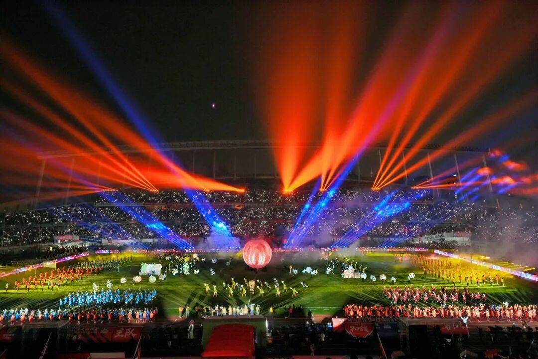 在经典足球歌曲《生命之杯》的澎湃节奏中,全场迎来最激动人心的共创环节。汇聚于场中的代表与观众看台遥相呼应,共同推动巨型足球缓缓向前滚动。自开赛以来就有的“滚球”仪式,不仅是对足球运动的诗意致敬,更寓意着团结、激情与梦想的接力传递。