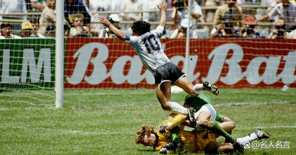 “这个球一半是马拉多纳的脑袋,一半是上帝的手。” 马拉多纳赛后如此评价自己的第一粒进球。