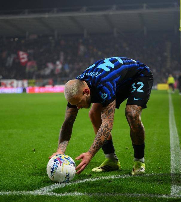 国际米兰虽然人数占优,却迟迟无法打破僵局。直到第76分钟,国际米兰左路发动攻势,迪马尔科送出一记精准的传中球,刚刚替补上场不久的年轻前锋皮奥·埃斯波西托在禁区内高高跃起,一记势大力沉的头槌,将球砸进了网窝!2比1,国际米兰再次领先。整个梅阿查球场瞬间沸腾,蓝黑色的旗帜在空中挥舞,球迷们欢呼雀跃,似乎胜利已经近在咫尺。